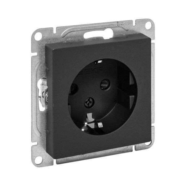 Механизм розетки, 16А, с заземлением, со шторками, чёрный Эпика EKF