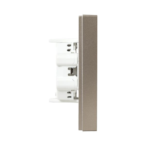Механизм розетки двойной, 16А, без заземления, со шторками, с рамкой, шампань Эпика EKF