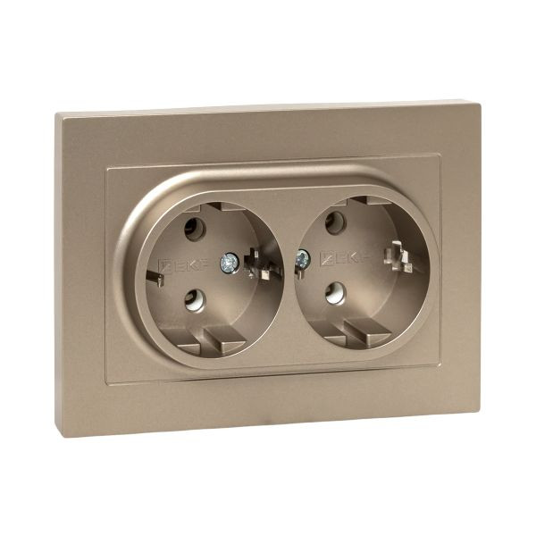 Механизм розетки двойной, 16А, с заземлением, без шторок, с рамкой, шампань Эпика EKF