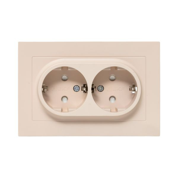 Механизм розетки двойной, 16А, с заземлением, со шторками, с рамкой, кремовый Эпика EKF