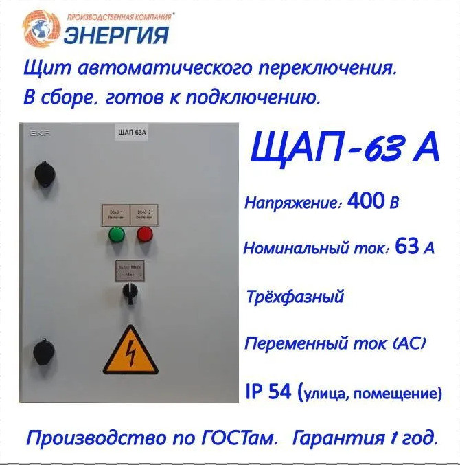 Щит автоматического переключения, навесной, уличный, ЩАП 63А, IP54, 500х400х200 металлический корпус, в сборе.