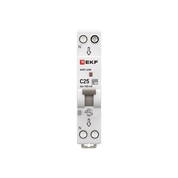 Автоматический выключатель дифференциального тока АВДТ-63M 1P+N (18мм) 25А 100мА характеристика C тип AС электронный 6кА PROXIMA EKF DA63M-25C-100