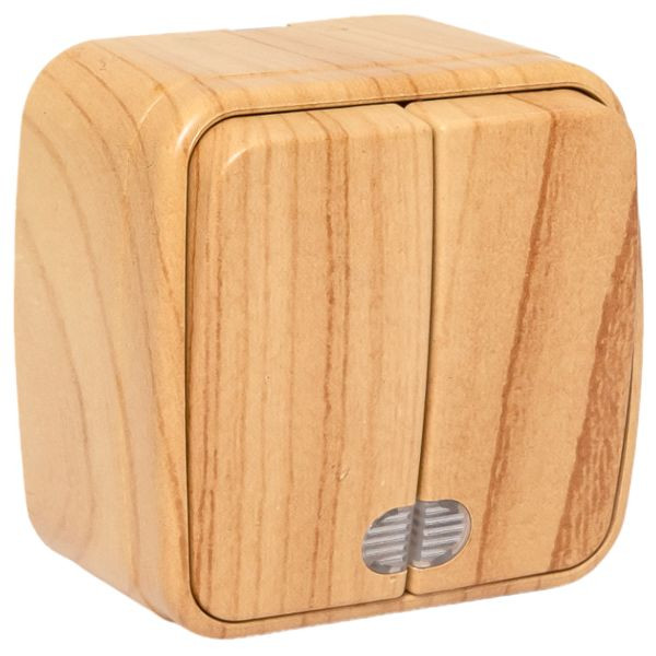 Выключатель 2-клавишный ОП Минск 10А с индикатором светлое дерево EKF EGV10-123-30