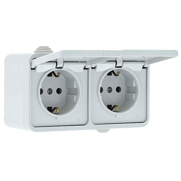 Блок розетка-розетка 16А с/з с крышкой IP44 белая Прага EKF PROxima