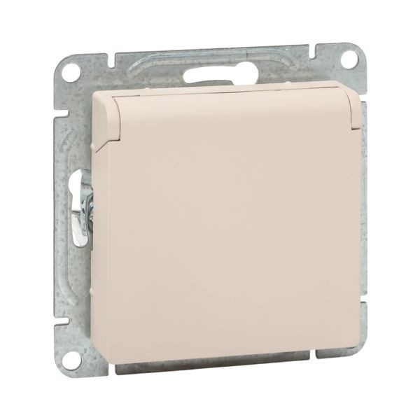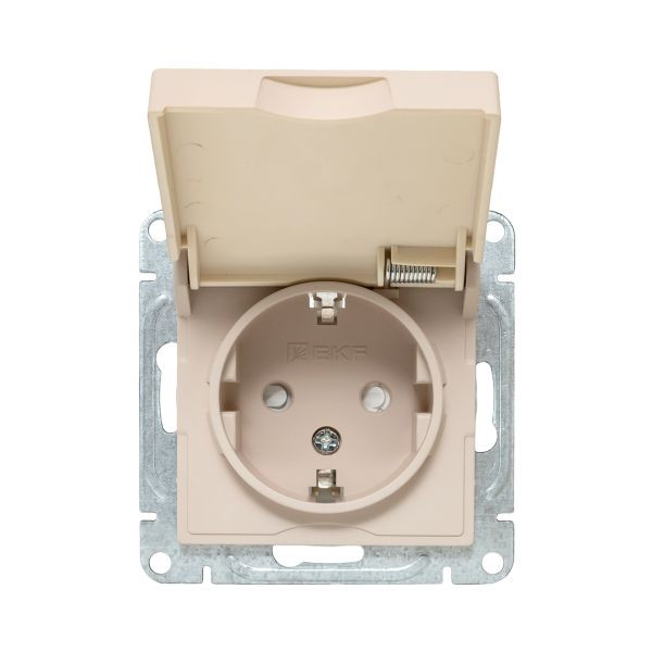 Механизм розетки, 16А, IP44, с заземлением, со шторками, c крышкой, кремовый Эпика EKF