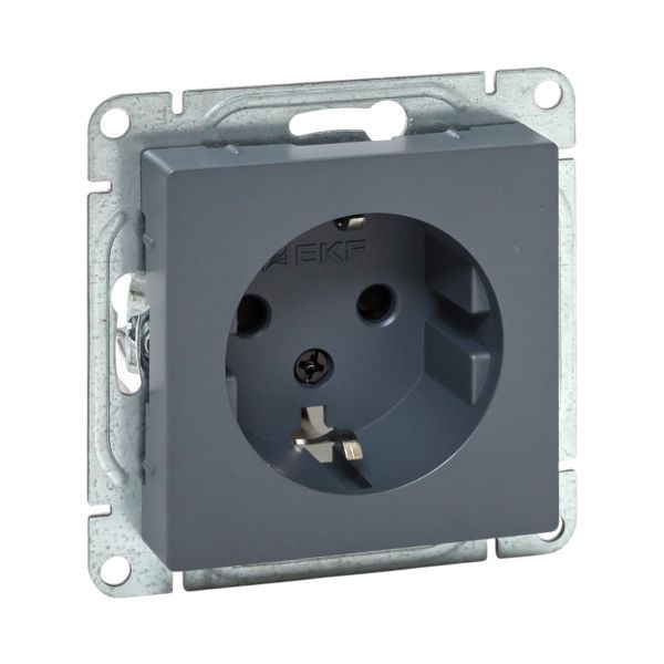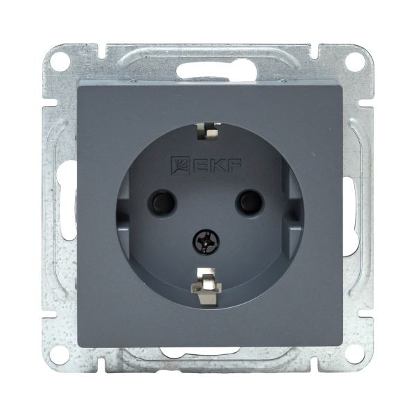 Механизм розетки, 16А, с заземлением, со шторками, графит Эпика EKF