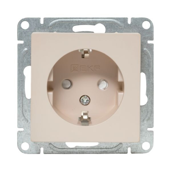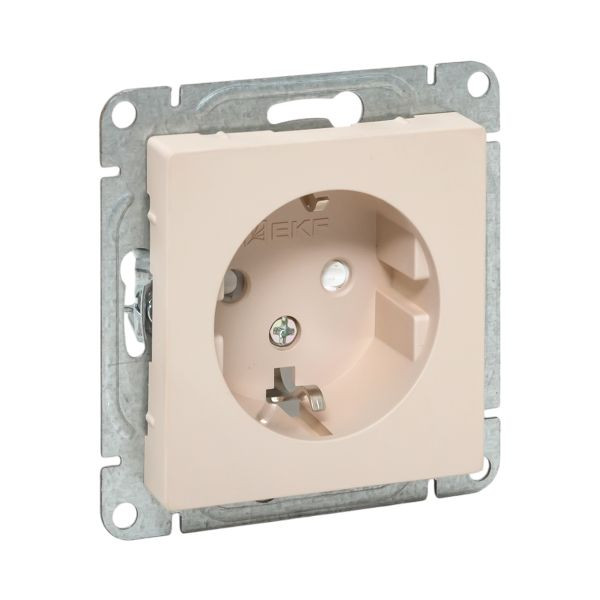 Механизм розетки, 16А, с заземлением, со шторками, кремовый Эпика EKF