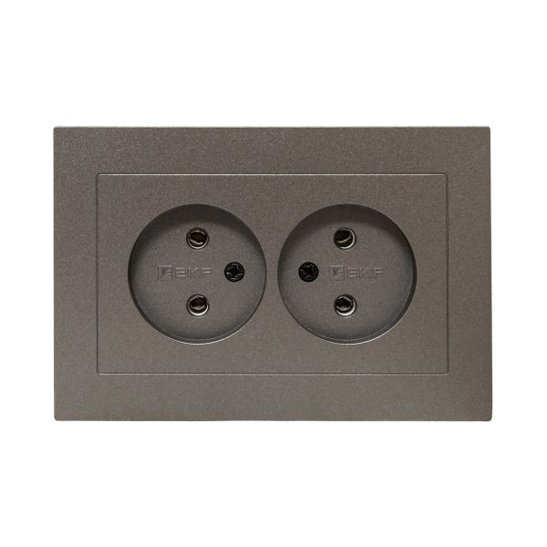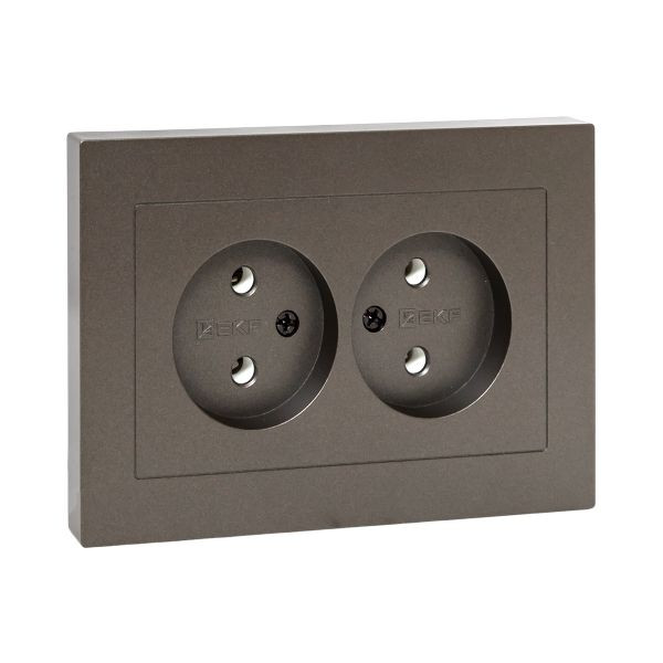 Механизм розетки двойной, 16А, без заземления, без шторок, с рамкой, мокко Эпика EKF