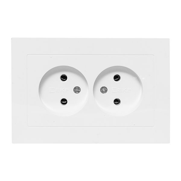Механизм розетки двойной, 16А, без заземления, без шторок, с рамкой, белый Эпика EKF