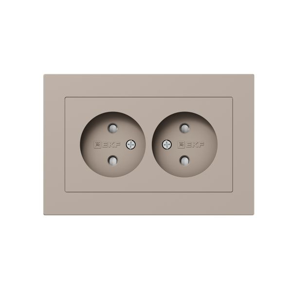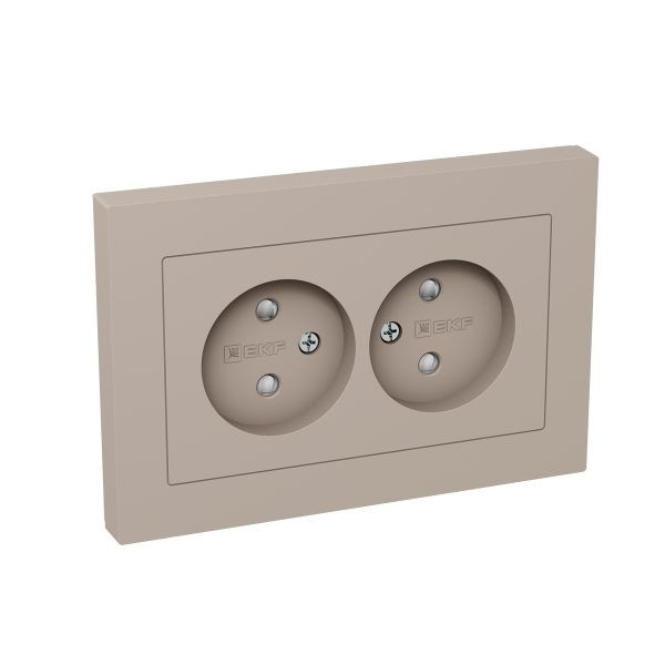 Механизм розетки двойной, 16А, без заземления, со шторками, с рамкой, кремовый Эпика EKF