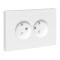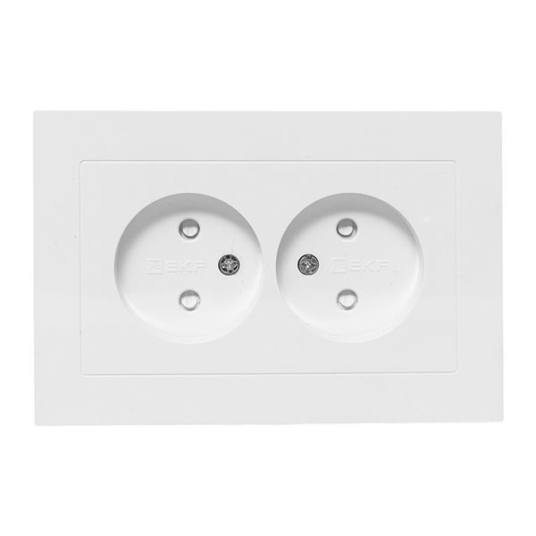 Механизм розетки двойной, 16А, без заземления, со шторками, с рамкой, белый Эпика EKF