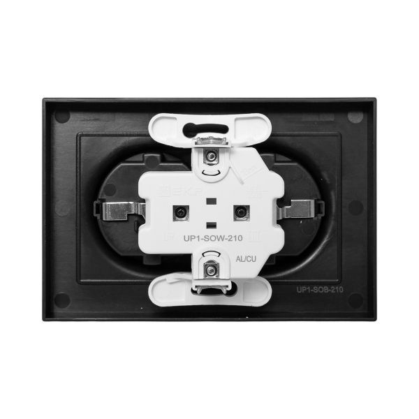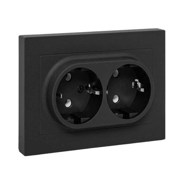 Механизм розетки двойной, 16А, с заземлением, без шторок, с рамкой, чёрный Эпика EKF