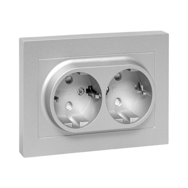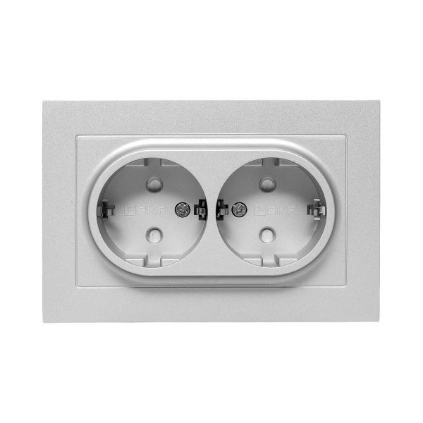 Механизм розетки двойной, 16А, с заземлением, со шторками, с рамкой, алюминий Эпика EKF