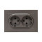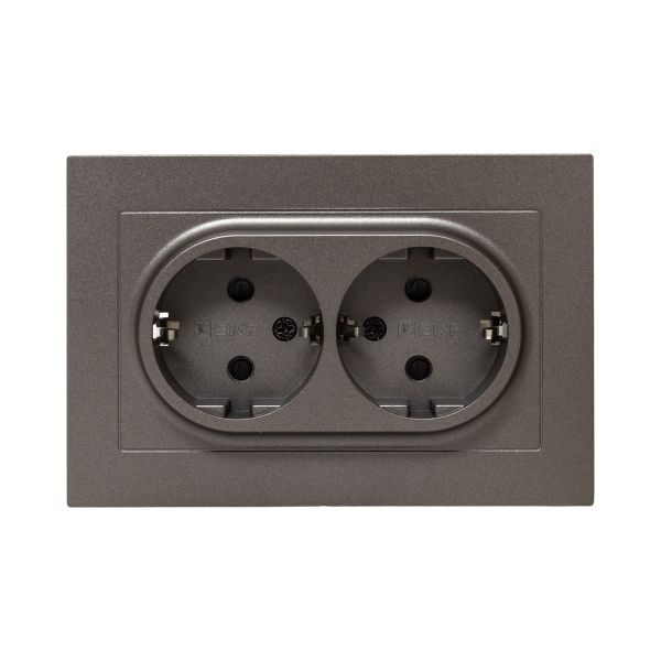 Механизм розетки двойной, 16А, с заземлением, со шторками, с рамкой, мокко Эпика EKF