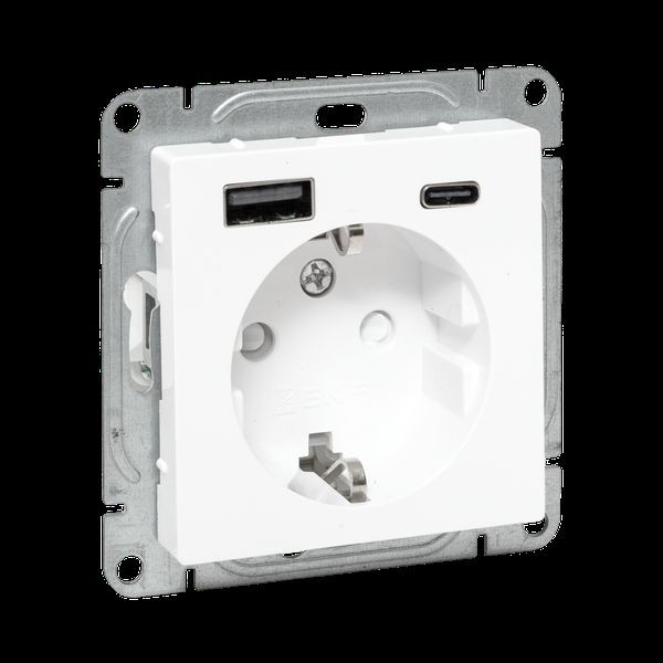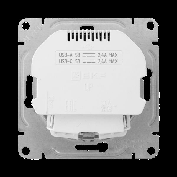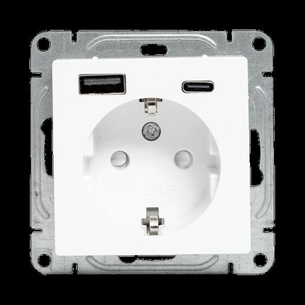 Механизм розетки с USB-A+С - 2шт, 16А, с заземлением, со шторками, белый Эпика EKF