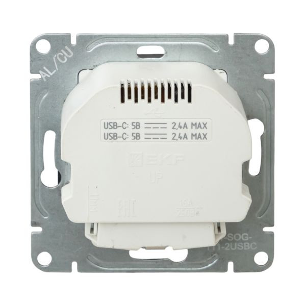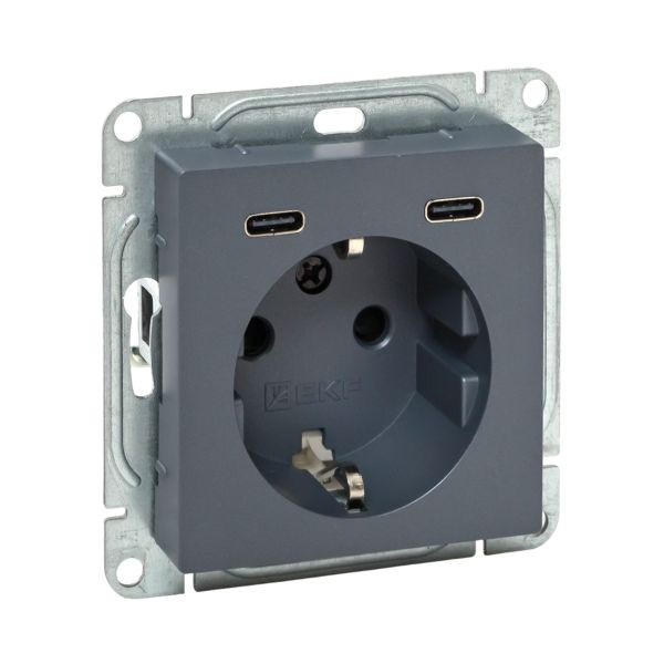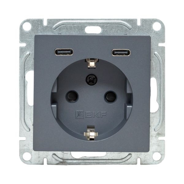 Механизм розетки с USB-C - 2шт, 16А, с заземлением, со шторками, графит Эпика EKF