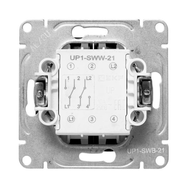 Механизм выключателя, двухклавишный, проходной, чёрный Эпика EKF