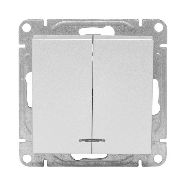 Механизм выключателя, двухклавишный, с подсветкой, алюминий Эпика EKF