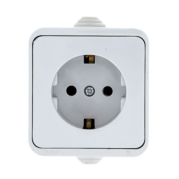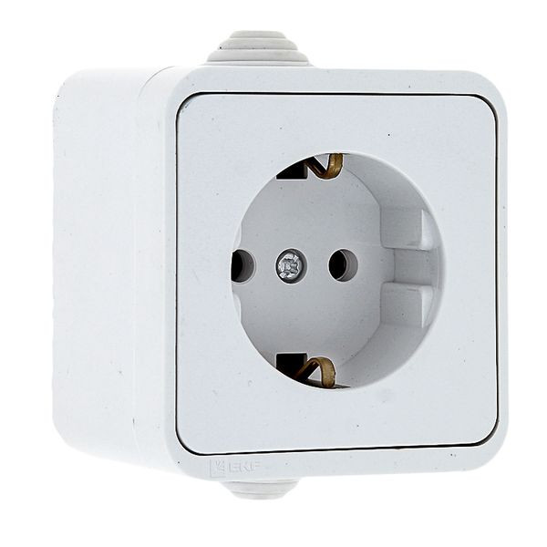 Прага Розетка 1-местная 16А с заземлением IP44 белая EKF
