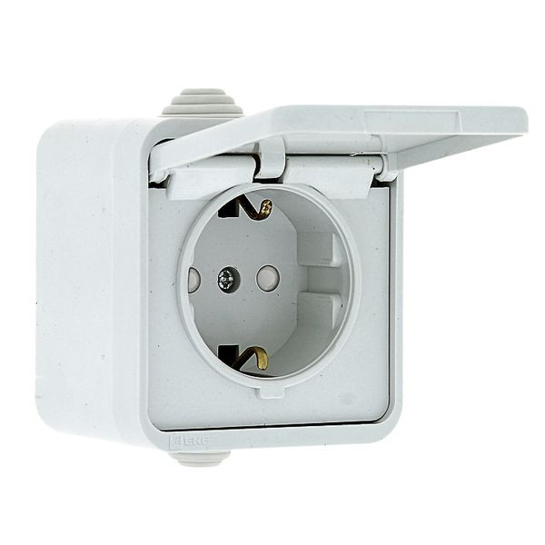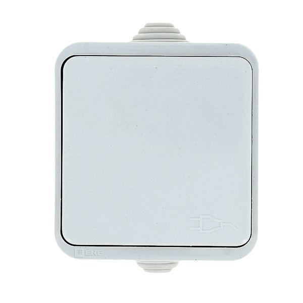 Прага Розетка 1-местная 16А с заземлением с крышкой IP44 белая с защ, штор, EKF