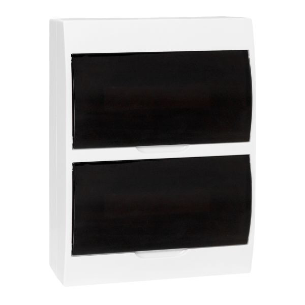 Корпуса пластиковые серии «Unix IP40» предназначены для сборки силовых распределительных и слаботочных щитов. На DIN-рейки устанавливается модульное оборудование. На монтажные платы - антенные разветвители, Wi-Fi роутеры, патч-панели и иное слаботочное оборудование. Щиты устанавливаются на поверхность стены. Ассортимент корпусов с din-рейками представлен размерами вместимостью до 72 модулей, по 12 или 18 модулей в ряду, с белой глухой или прозрачной тонированной дверью, с DIN-рейками или перфлорированными монтажными платами. Особенностью корпусов является плоское основание, упрощающее сборку и подключения внутри, лицевая панель Корпуса изготовлены из качественного глянцевого ABS-пластика, имеют минималистичный дизайн и впишутся в большинство интерьеров.