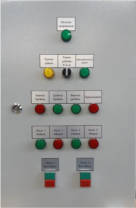 Шкаф управления насосами ШУН-2-037-400В является полностью готовым изделием, предназначенным для перекачки и контроля уровня хозяйственно-бытовых, промышленных, ливневых сточных вод и т.д. Контроль осуществляется через управление насосными двигателями. Применение данного шкафа актуально для водоканалов, в системах строительных компаний и производственных предприятий, в сфере ЖКХ и т.д. Шкаф ШУН-2-037-400В осуществляет управление двумя насосами, он является высокоэффективным изделием благодаря оптимальному алгоритму управления и продуманной системе индикации состояний. Алгоритм управления шкафа ШУН-2-037-400В позволяет чередовать время работы насосов, что обеспечивает равномерную нагрузку на них. При необходимости оператор может перевести управление насосами в ручной режим, что позволяет осуществлять включение и выключение насосов независимо от установленного алгоритма, к примеру в случае повреждения датчиков уровня. Модификация шкафа позволяет подключать датчики PNP, что в свою очередь расширяет возможности эксплуатации, например можно использовать не только поплавковые датчики, но и датчики других типов, ультразвуковые и т.д. Безопасность нахождения поплавковых датчиков в воде, в случае повреждения кабеля, обеспечивается питанием 24В. Шкаф управления насосами ШУН-2-037-400В имеет понятный интерфейс, что облегчает работу с ним для обслуживающего персонала. Индикация гарантирует полный контроль за рабочим состоянием системы. Шкаф управления обеспечивает защиту двигателей насосов. Эта функция шкафа активна постоянно и является приоритетной в алгоритме управления. Функция защиты обеспечивает: тепловую защиту двигателей, защиту от обрыва и неверного чередования фаз, защиту от перекоса, защиту от высокого/низкого напряжения в сети, осуществляет контроль нейтрали. Наши шкафы могут использоваться на предприятиях в системах водоотведения, на очистных сооружениях, на канализационных станциях различных типов, а также для процессов осушения.