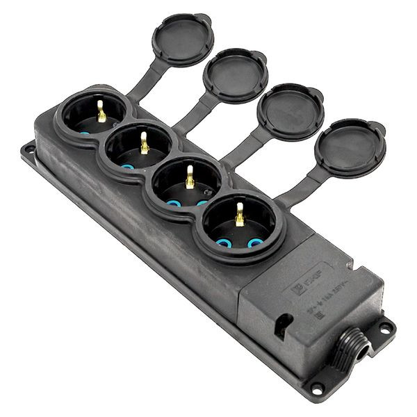 Роз, (колодка) четырехмест, с защит, крышками каучуковая 230В 2P+PE 16A IP44 EKF PRO