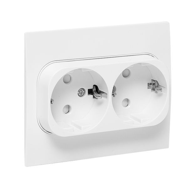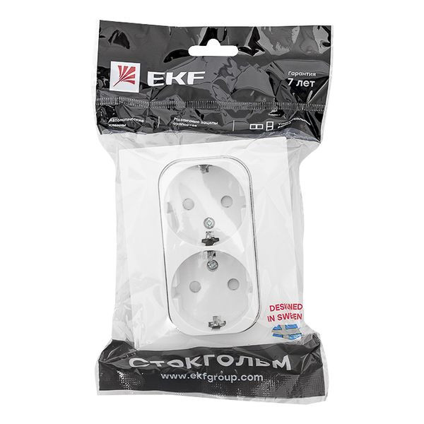 Стокгольм Розетка 2-местная с/з 16А автоматические клеммы белая с защ, штор, EKF PROxima EXR16-128-10