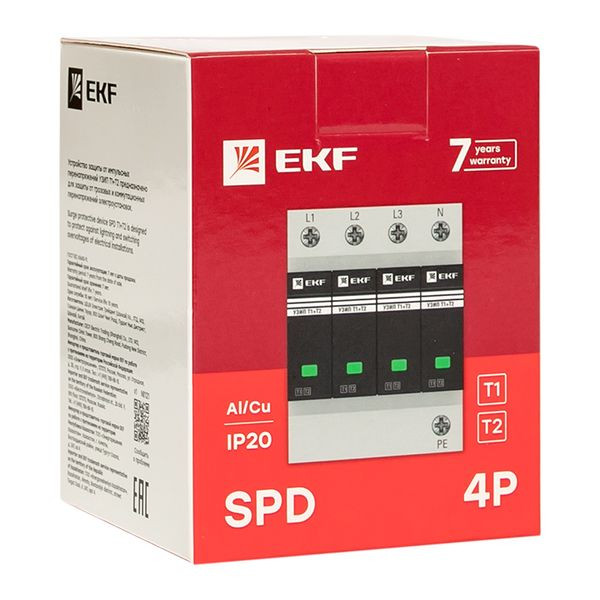 Устройство защиты от импульсных перенапряжений Т1+Т2, Iimp-12,5kA, In-20kA, Uc-275В, 4+0 EKF OV12-4-504