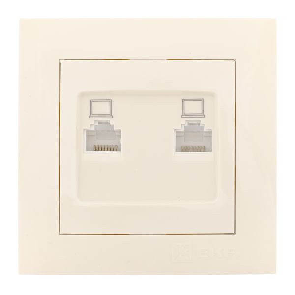 Валенсия розетка компьютерная RJ-45 2-местная кремовая EKF PROxima EWK02-035-20