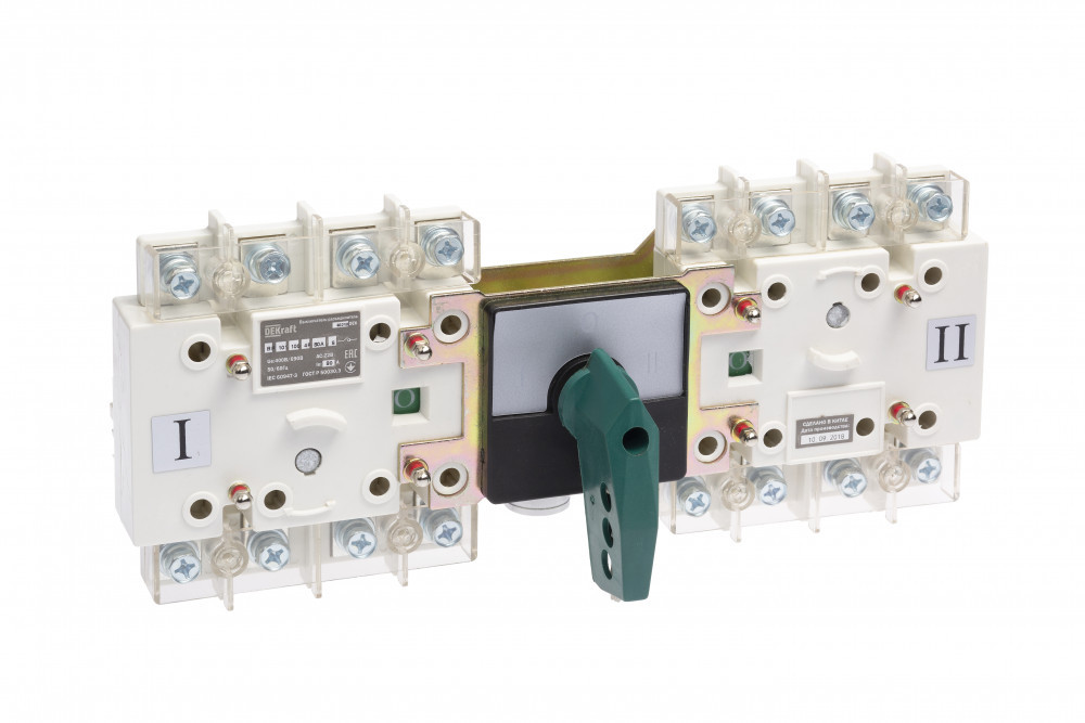 Выключатель-разъединитель серии ВР-101 DEKraft; 4P; реверсивный, тип S (Симметричный); номинальный ток 80 А; типоразмер 100; ном.напряжение до 690 В, 50 Гц; категория применения - АС-22В (смешанные активные и индуктивные нагрузки). Двойной разрыв контактов обеспечивает надежное гашение дуги и снижает риск повреждений. Подвод питания возможен как сверху, так и снизу аппарата. Медные клеммы обеспечивают высокую электрическую проводимость и удобство подключения проводников.
